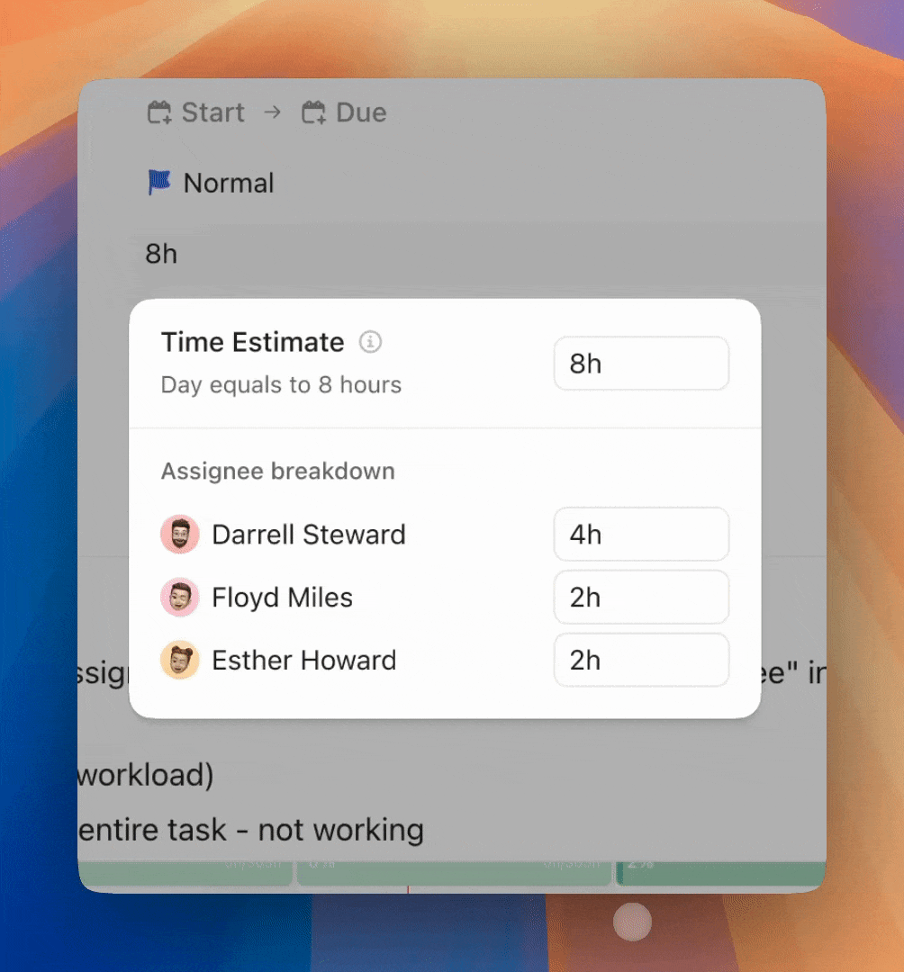 When updating a task’s total time estimate, it’s not always clear how the value will be distributed across assignees – which can cause uncertainty about what will change.